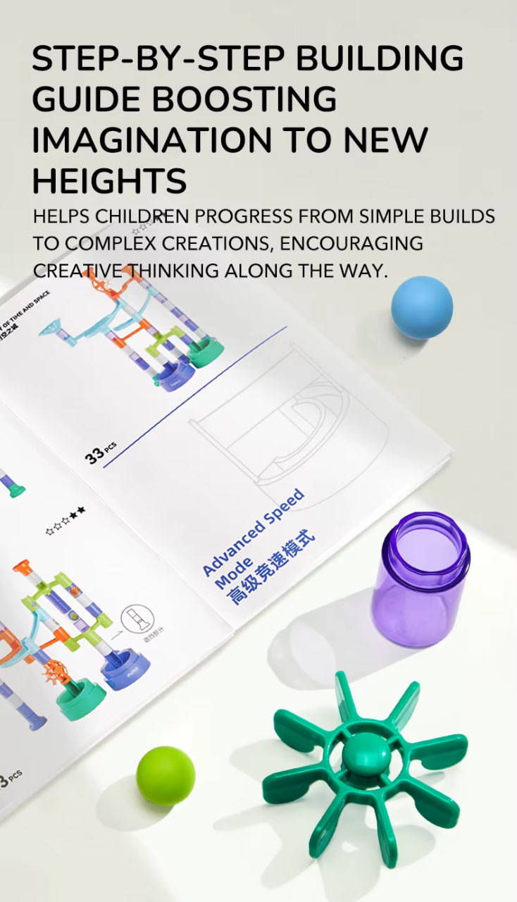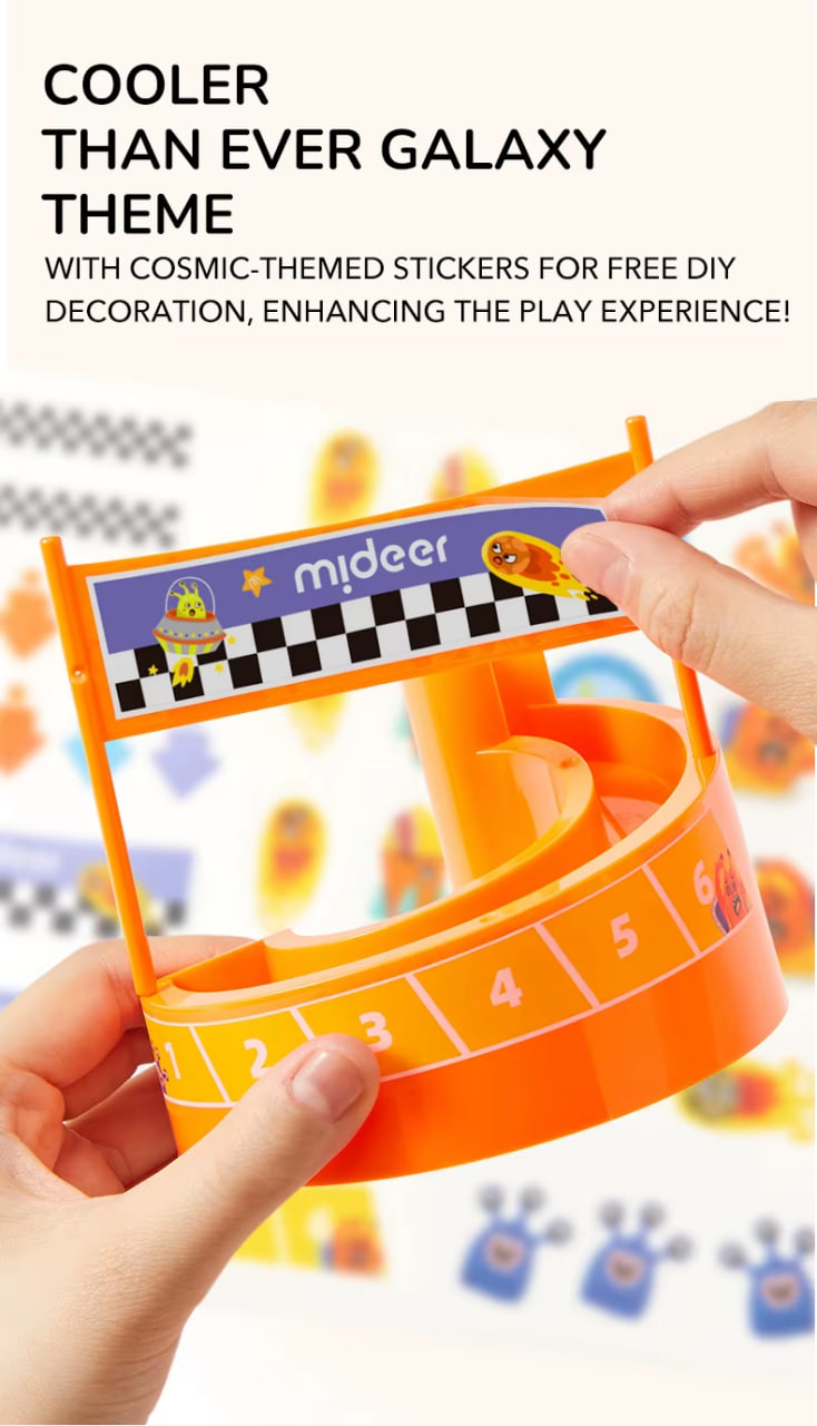 Прозорі деталі дозволяють дітям візуально відстежувати кожен поворот, віраж та падіння, коли мармури мчать до фінішу. Мармуровий забіг Mideer Marble Run, що містить покрокову інструкцію та наліпки на тему галактики, стимулює навчання STEM, творчість та розваги без екрану. Ідеально підходить для початківців-будівельників, допитливих умів та дослідників з уявою!