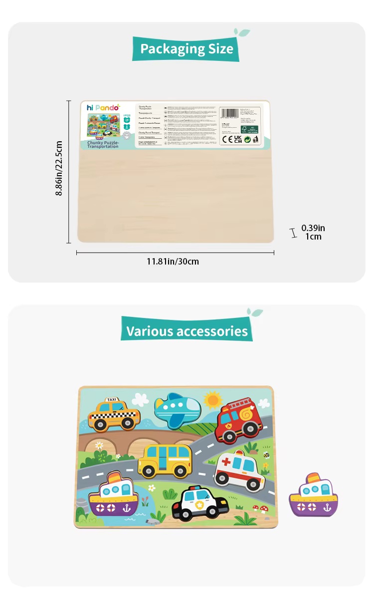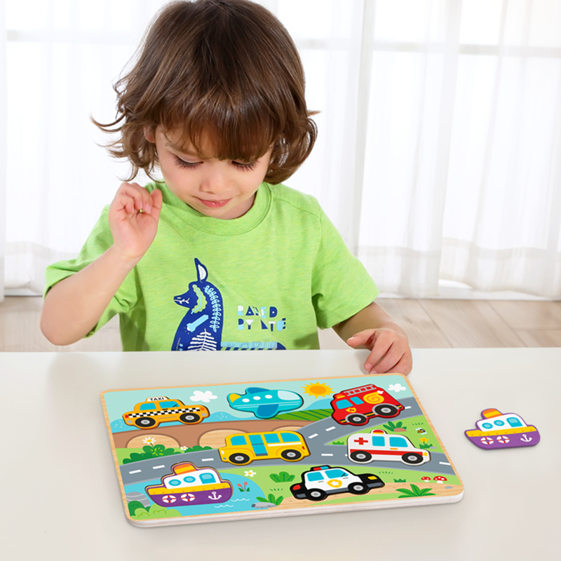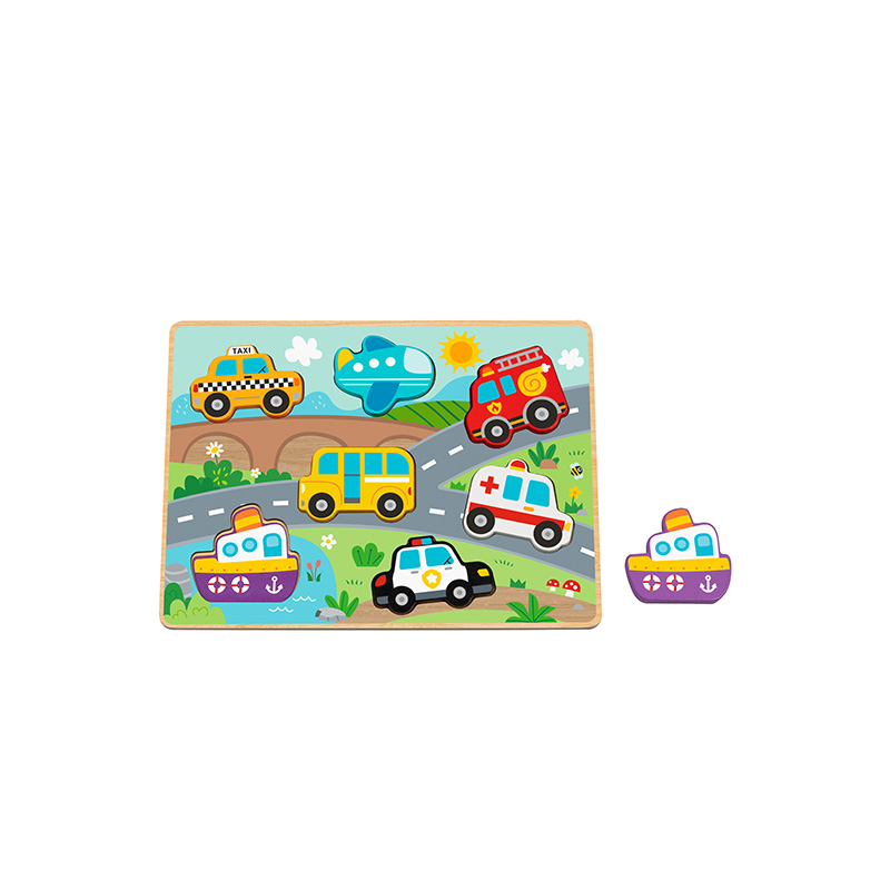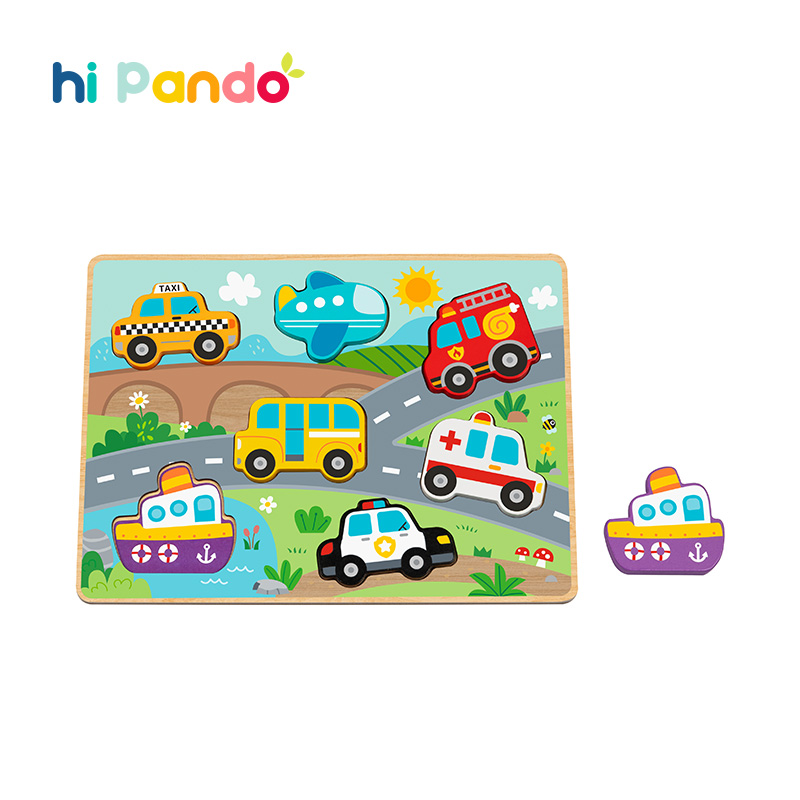 Дитячий дерев'яний розвиваючий іграшковий пазл-сортер Монтессорі, збігаюча дошка Транспорт - це головоломка для самих маленьких діточок серії Hi Pando від улюбленого виробника Tooky Toy.