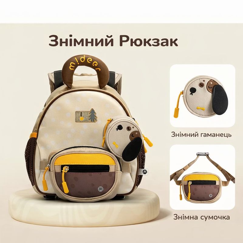 Дитячий ранець 3 в 1 Mideer для малюків та дошкільнят світло-коричневий Собачка ( MD2294 ) Рюкзак для дітей на прогулянку
