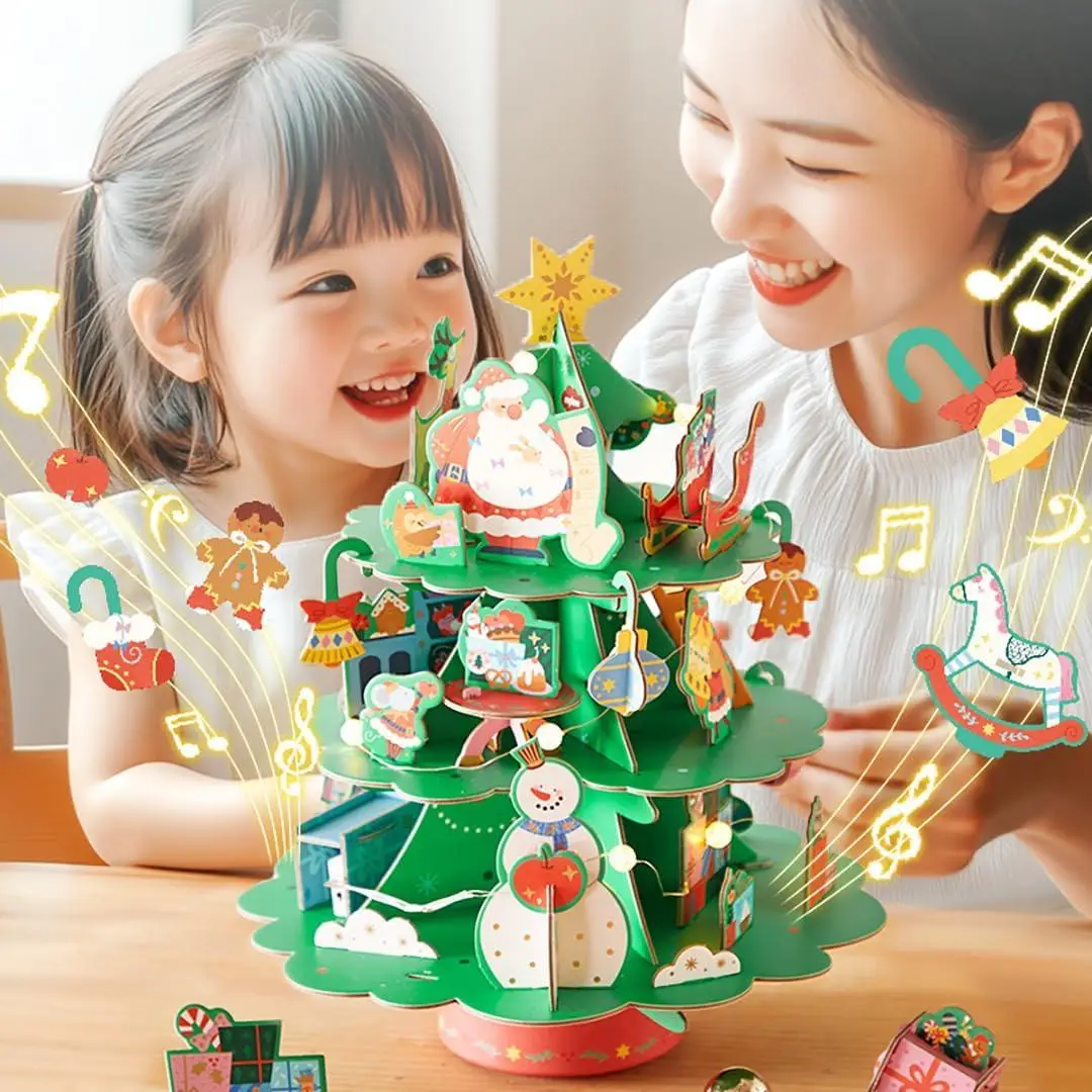 Різдвяний обертовий музичний 3D-пазл Ялинка – це інтерактивний святковий пазл, який поєднує в собі задоволення від складання зі святковою музикою та вогнями.
