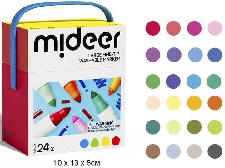 Великі маркери, що змиваються MiDeer дитячі - універсальні 24 шт (MD1550) на водній основі з тонким кінчиком
