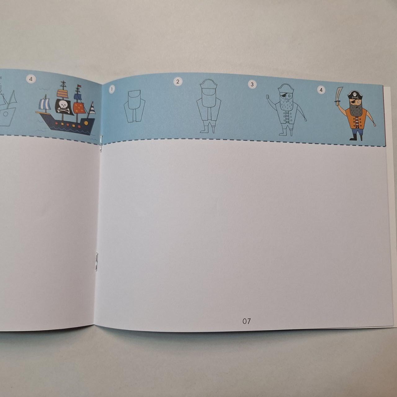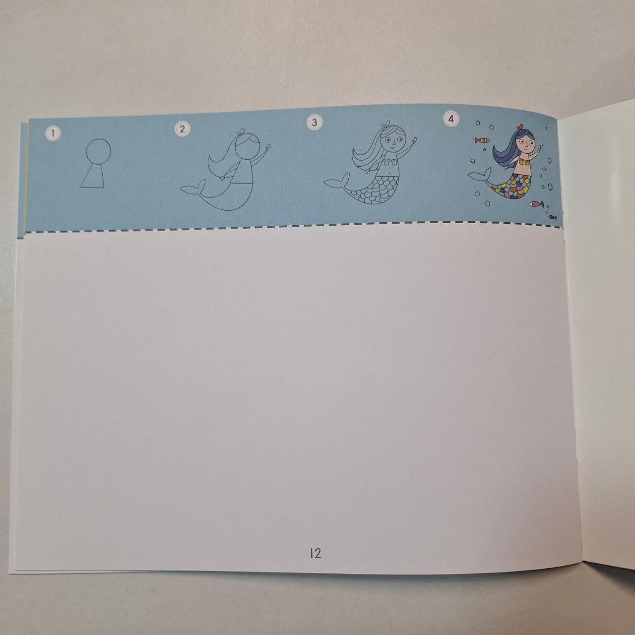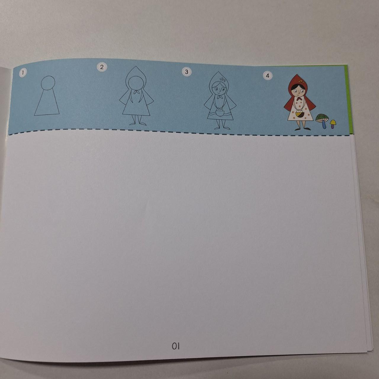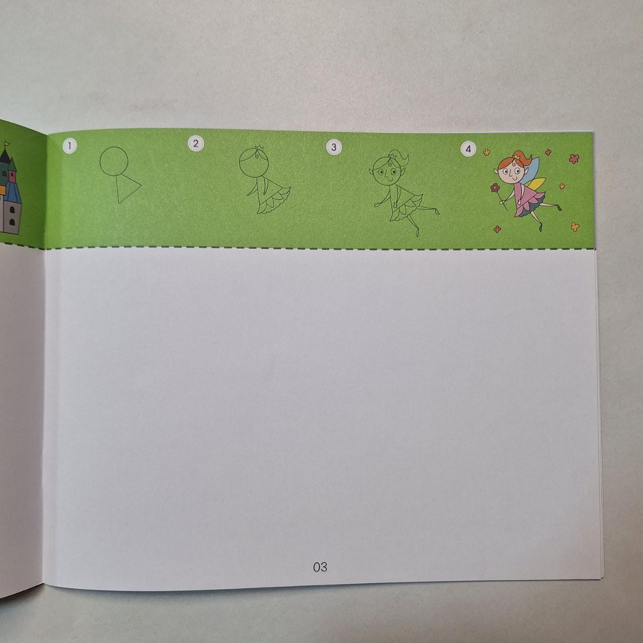 Цей альбом-посібник містить лінійні малюнки та орієнтири, що дарують дітям мистецьку подорож для пошагового створення картинки, а також даючи простір для власної вільної творчості.