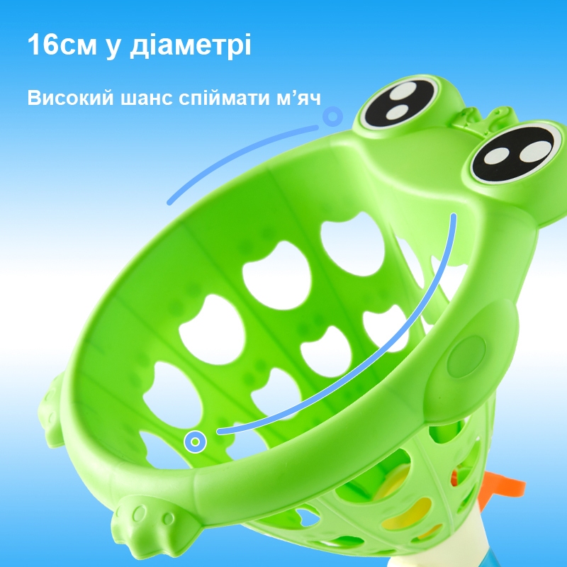 •Завдяки ергономічному дизайну та великому діаметру кошика, навіть молодші діти можуть легко ловити м'ячі, що підвищує їхню впевненість у своїх силах.