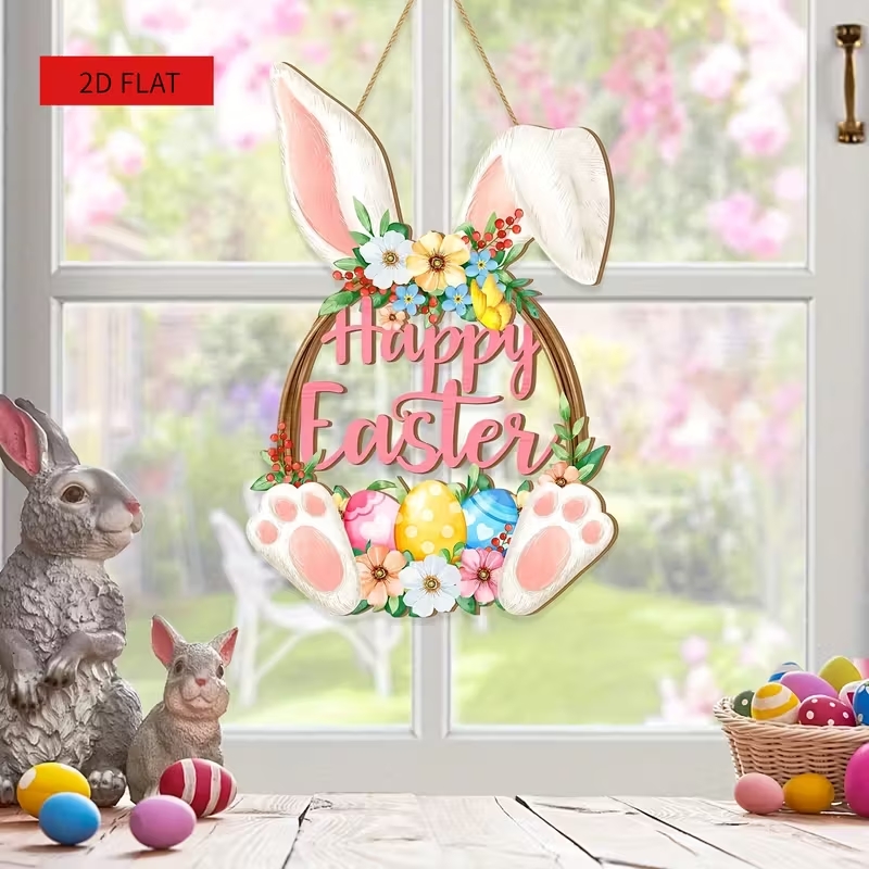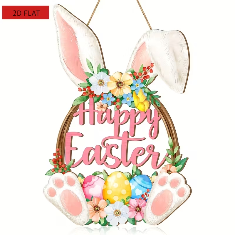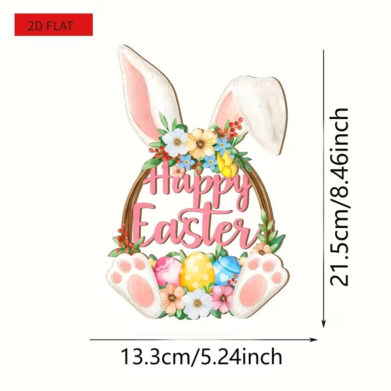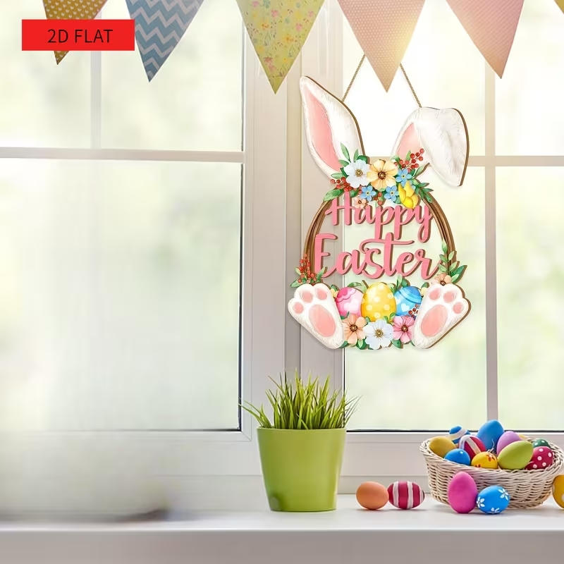 2D плоска дерев'яна підвіска Пасхальний Зайчик ідеально підходить для домашнього та святкового декору до Великодня.
