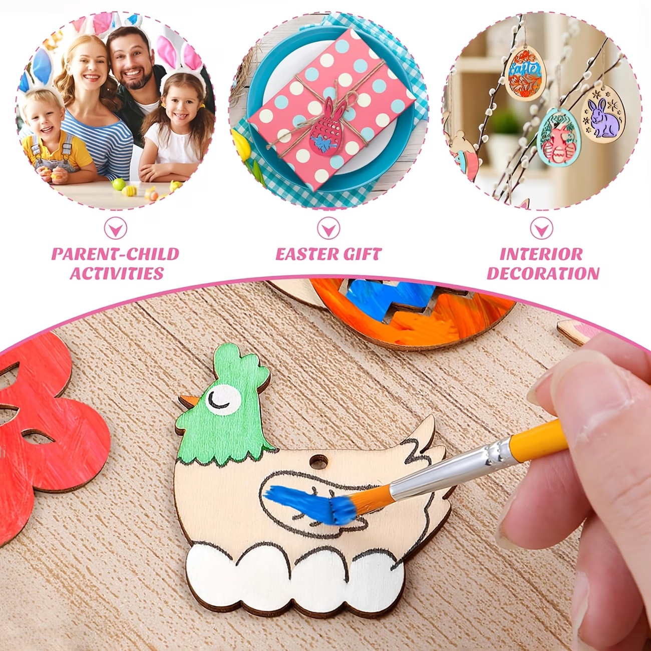Ці підвіски можна розмалювати акриловими маркерами, акриловими перламутровими фарбами, пальчиковими фарбами або залишити як є для для оформлення святкового кошика чи прикрасити будинок до Великодня.