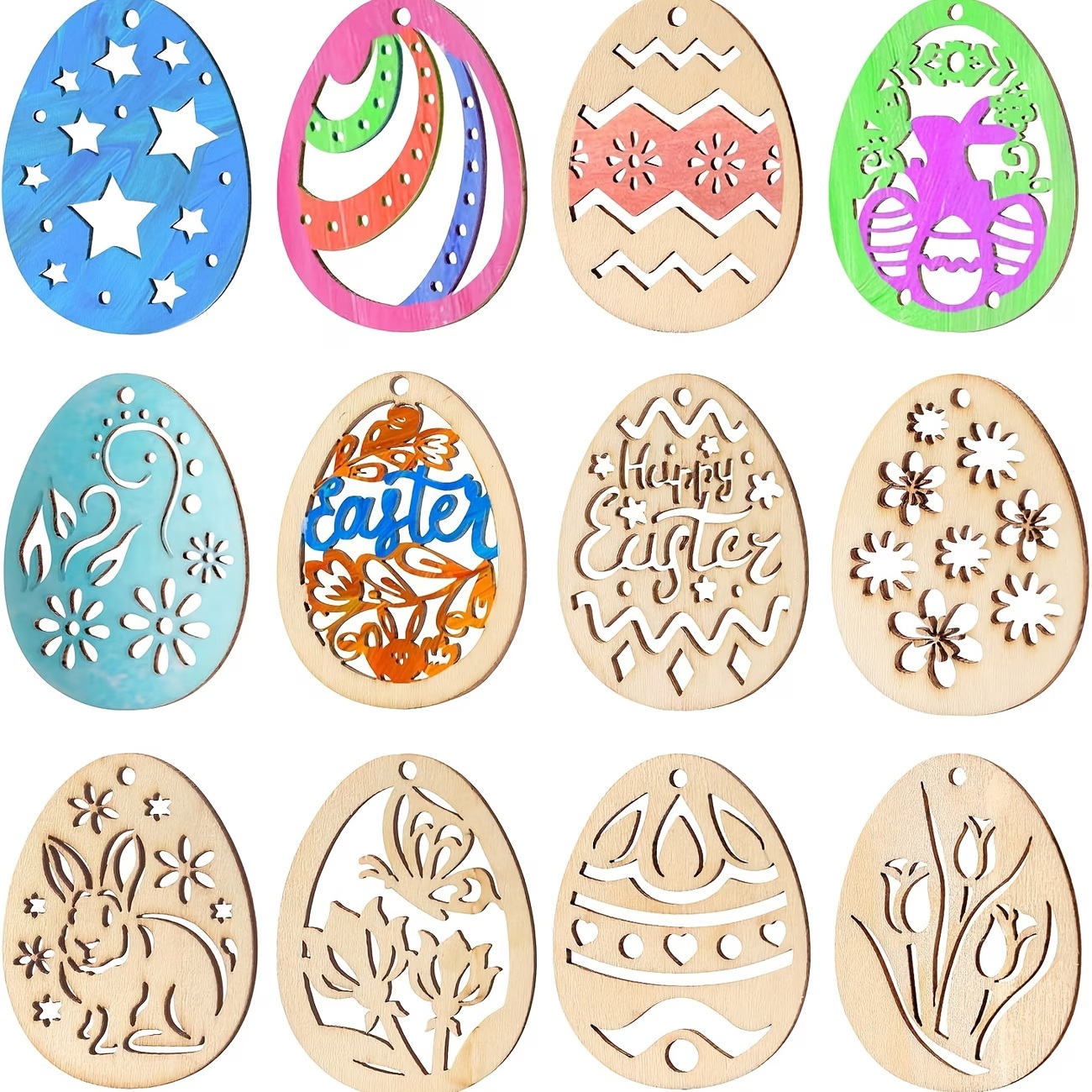 В Наборі дерев'яних Великодніх прикрас є 20 дерев'яних підвісок для розпису та малювання своїми руками у вигляді великодніх яєць .